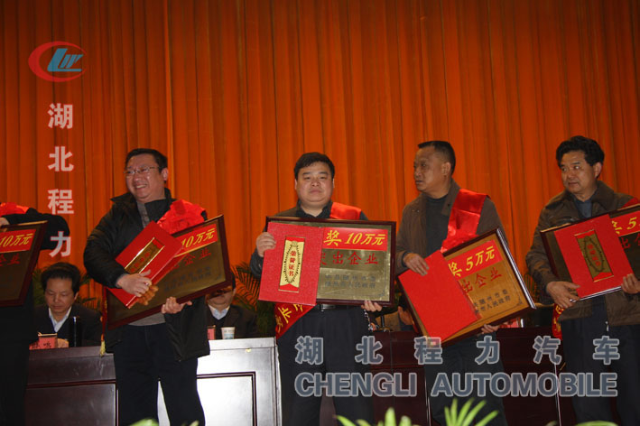 程力公司2009年稅收在汽車行業率先突破1000萬元,為隨州及曾都區的經濟建設作出了突出貢獻,分別獲得市政府十萬元獎勵及區政府八萬元獎勵。會上,市委書記馬清明同志親自為公司總經理程阿羅頒發了獎牌和獎金,并對程阿羅總經理說,咱們在常委會上,都感到程力公司2009年稅收能過千萬,是汽車行業一件了不起的事情,希望你們能再接再厲,為隨州經濟工作作出大的貢獻。