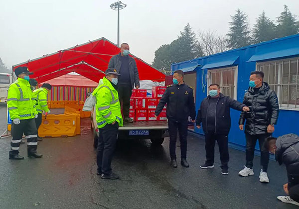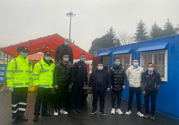 當天下午五點多,風雪漸停水霧仍然彌漫籠罩,車輛能見度較低,通過集團公司全體公益志愿者的努力,趕在曾都區城管局一線員工交換班前到達了何店高速路出口疫情管控檢測點,及時為一線抗疫英雄們送上了新春慰問品,為他們提供力所能及的支持和幫助。