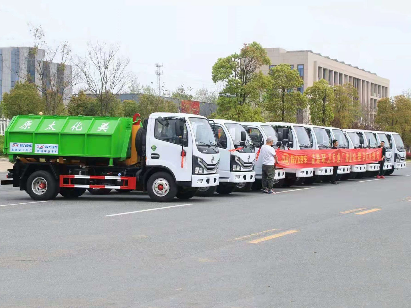 程力集團東風多利卡勾臂垃圾車批量發車